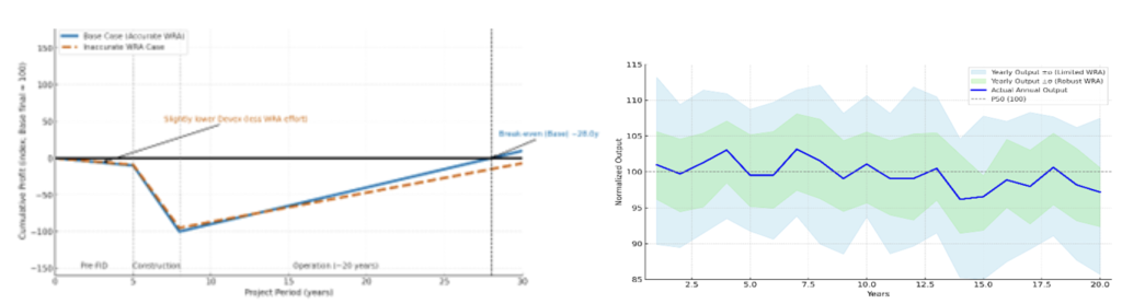 また③操業期間においても、精度の高い採算性評価を行うためには、事前の風況調査(特に風況観測)の品質向上が不可欠であることを説明。高品質な風況調査を開発段階で実施することで、不確実性を低減し、将来的な採算性悪化リスクを抑制できることを強調しました。